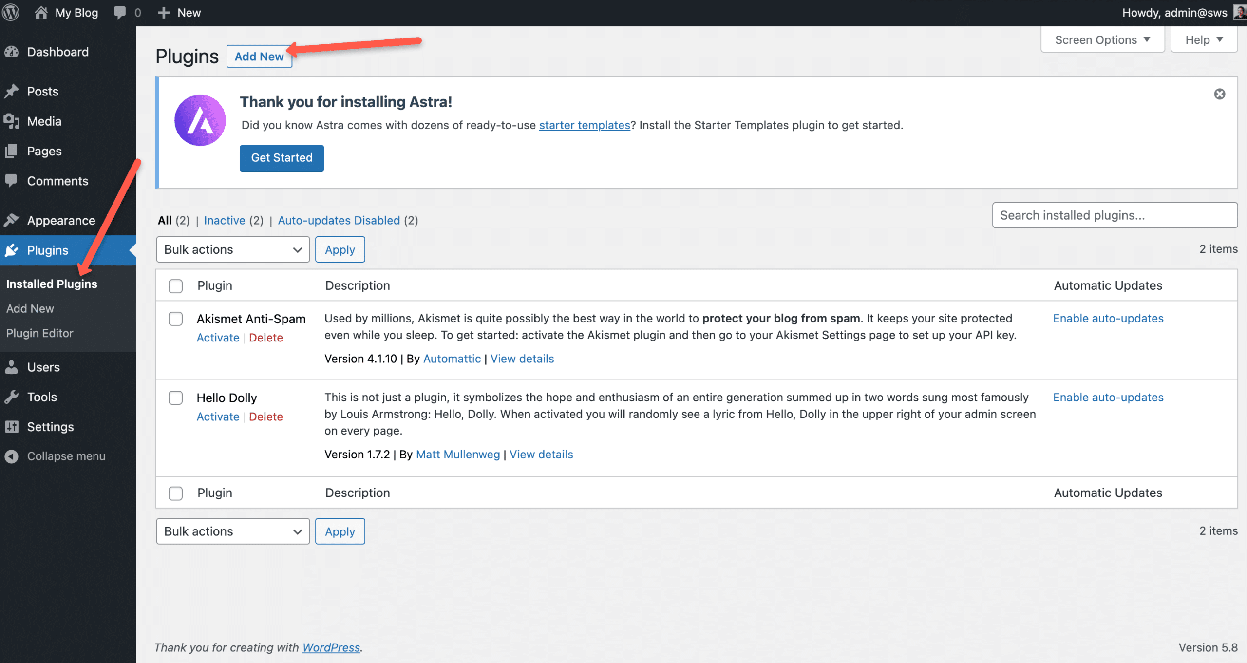 - Go to Plugins → Installed Plugins → Add New.