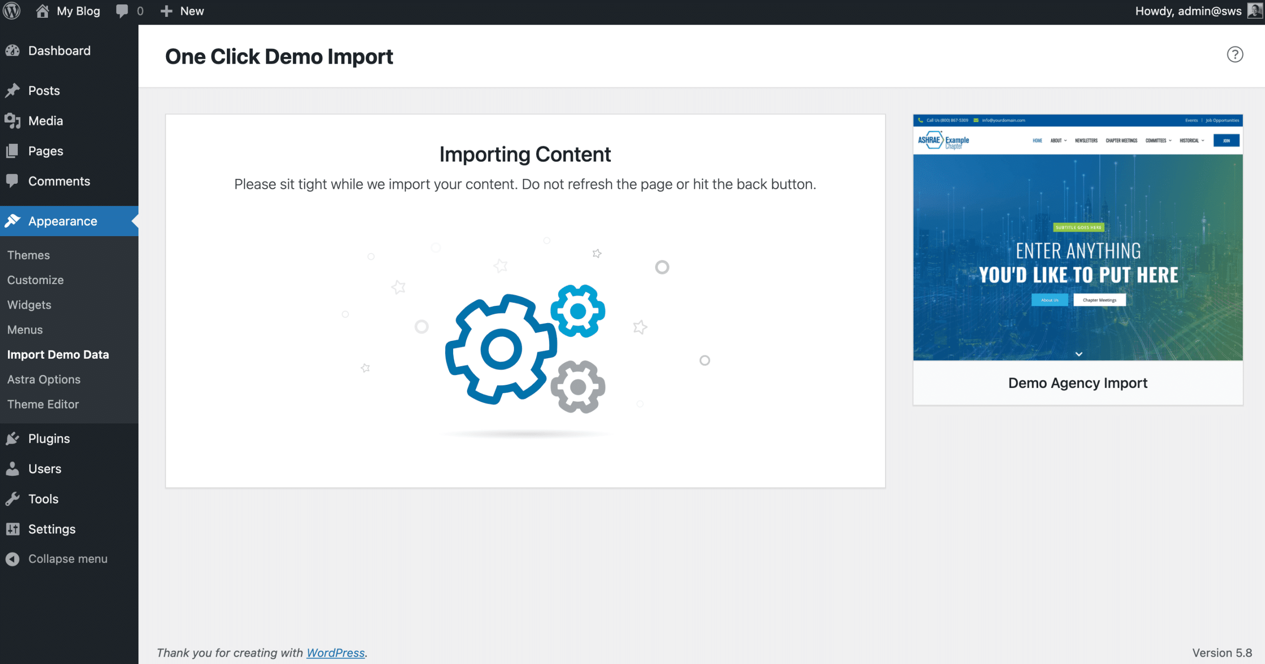 3. Add “One Click Demo Import” plugin