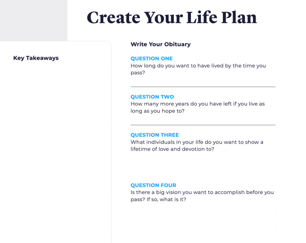I will teach you how to create a life plan that will give you a deep sense of meaning. I’ll also walk through a goal setting exercise that will ensure you actually achieve the most important goals in your life.