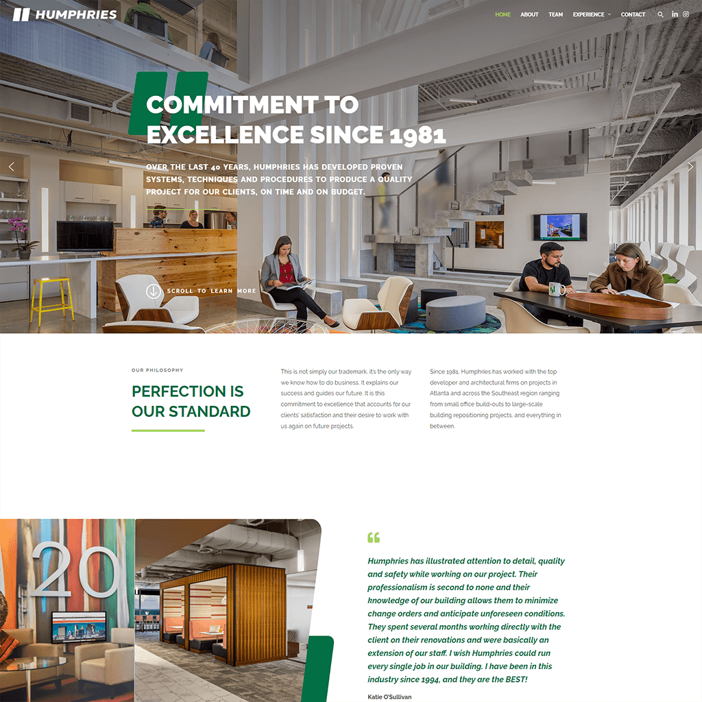 A dynamic, animation-driven redesign for a leading commercial contractor.