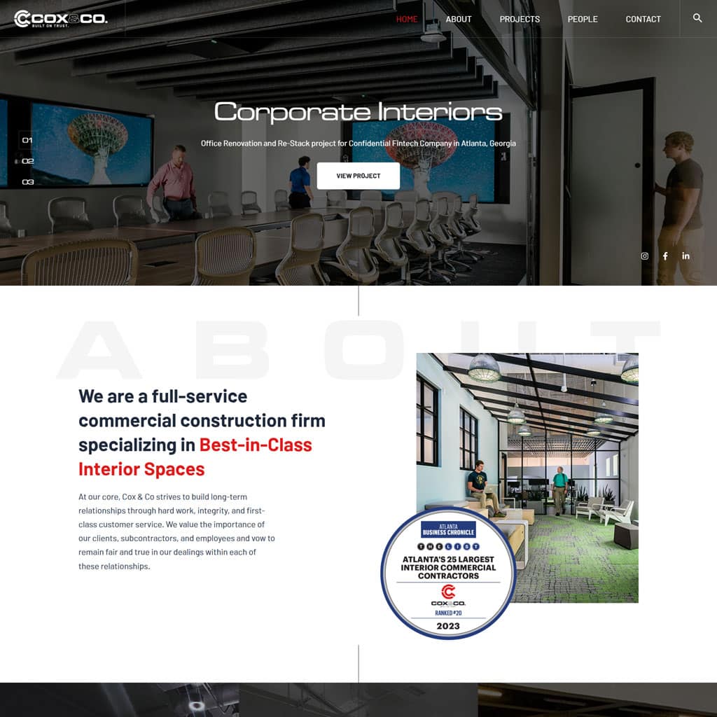 A clean, modern website that showcases Cox & Co.’s expertise in commercial interior construction and their dedication to quality and