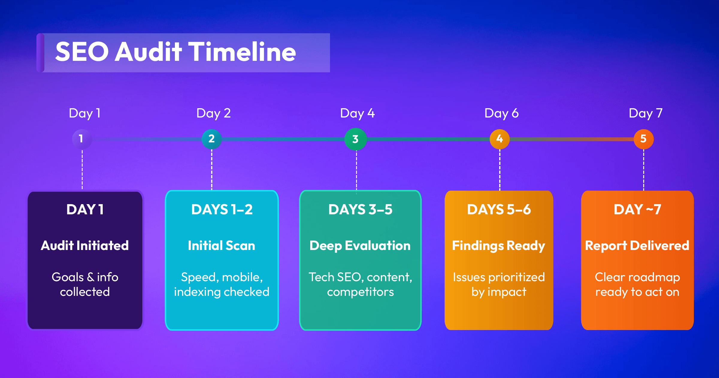 - Days 3 to 5: Deep SEO evaluation and competitive analysis